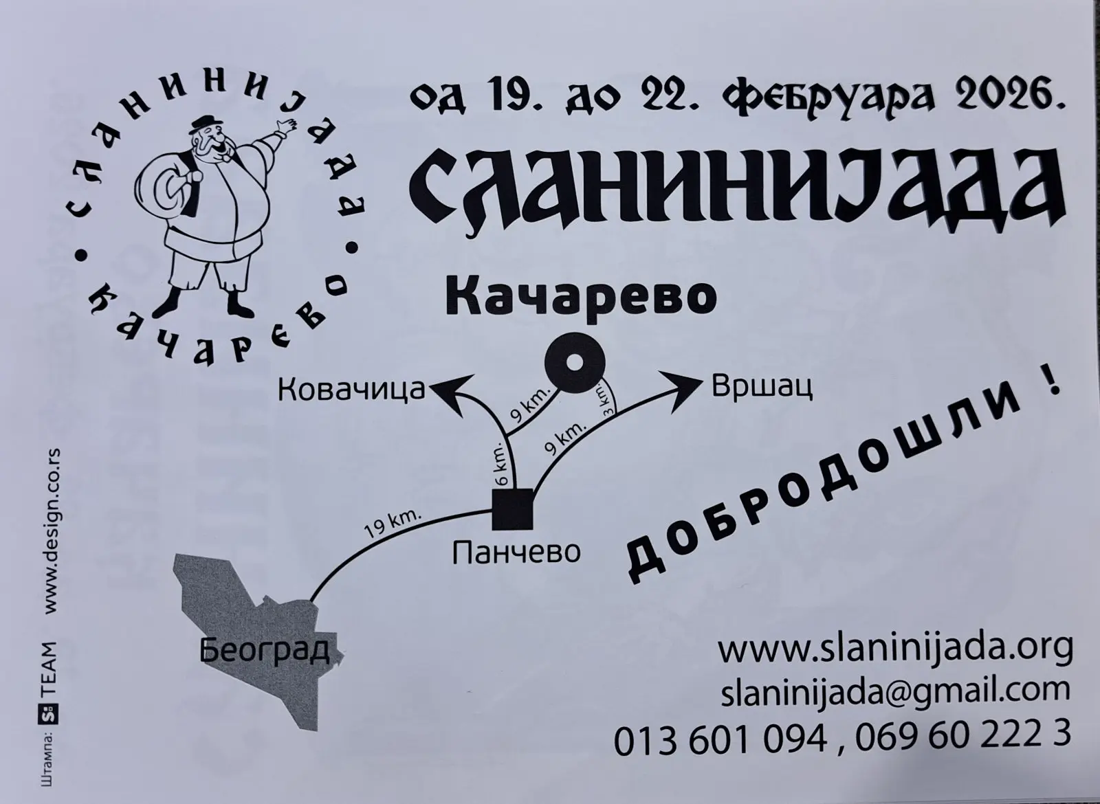 Posetioce očekuje takmičarska atmosfera, podrška publike i sadržaj koji doprinosi jedinstvenom duhu manifestacije. Pozivamo vas da dođete, podržite takmičare i budete deo Slaninijade 2026. Vidimo se u hali!