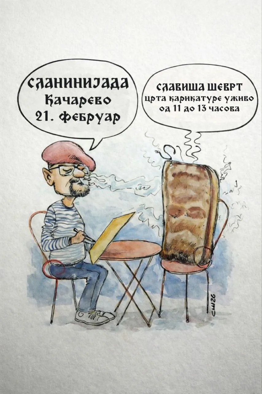 U okviru ovogodišnje Slaninijade, posetioce u subotu očekuje poseban umetnički program koji će dodatno obogatiti festivalsku atmosferu. Jedan od najpoznatijih srpskih portret-karikaturista, Slaviša Ševrt, dobitnik čak tri prestižne nagrade „Pjer“, crtaće karikature uživo i svojim prepoznatljivim stilom zabeležiti najupečatljivije crte lica posetilaca.